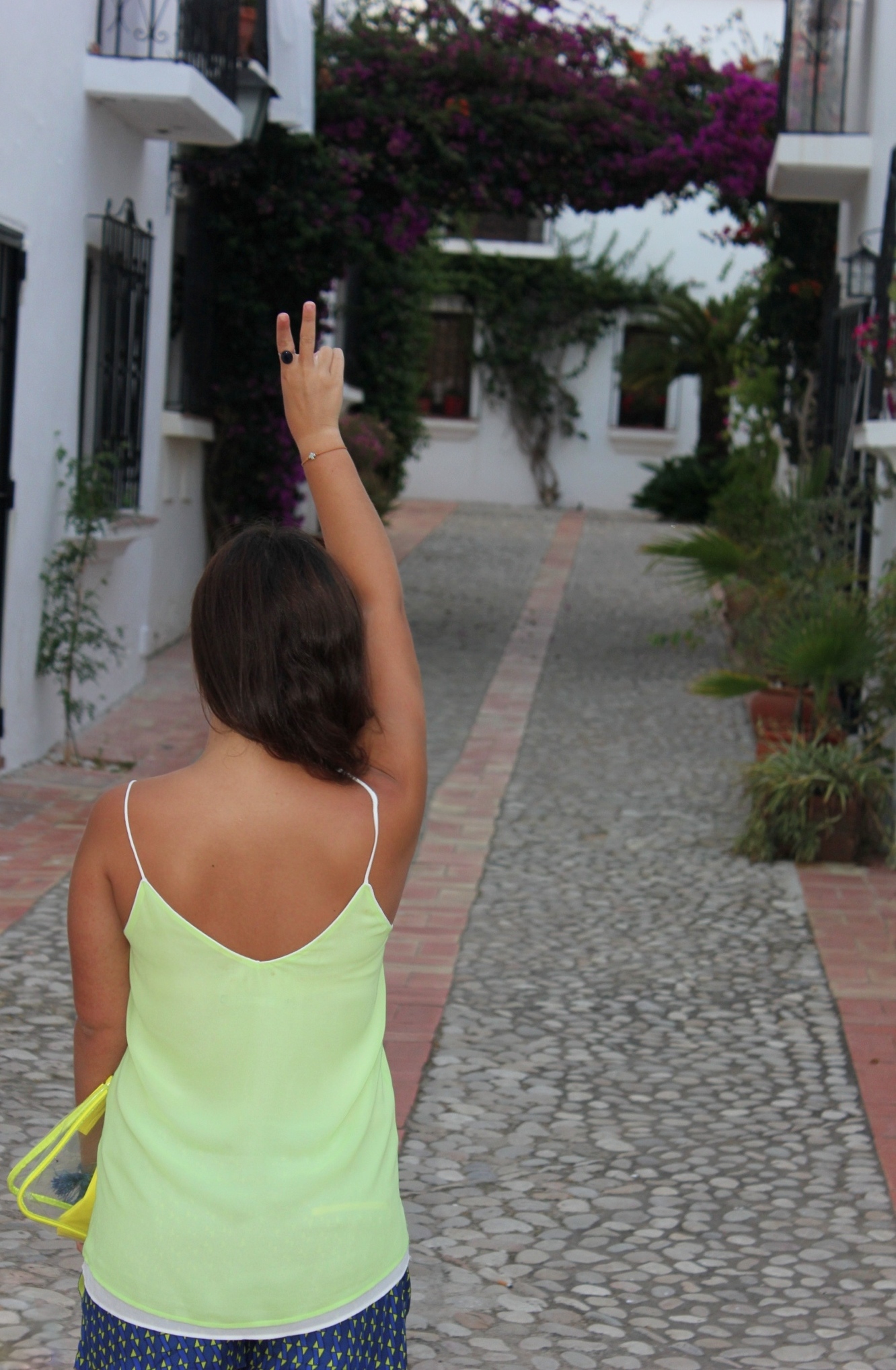 In today’s look, taking advantage of high temperatures, I’m still wearing summer and colourful clothes. I absolutely love this colour combination, klein blue and lime green.