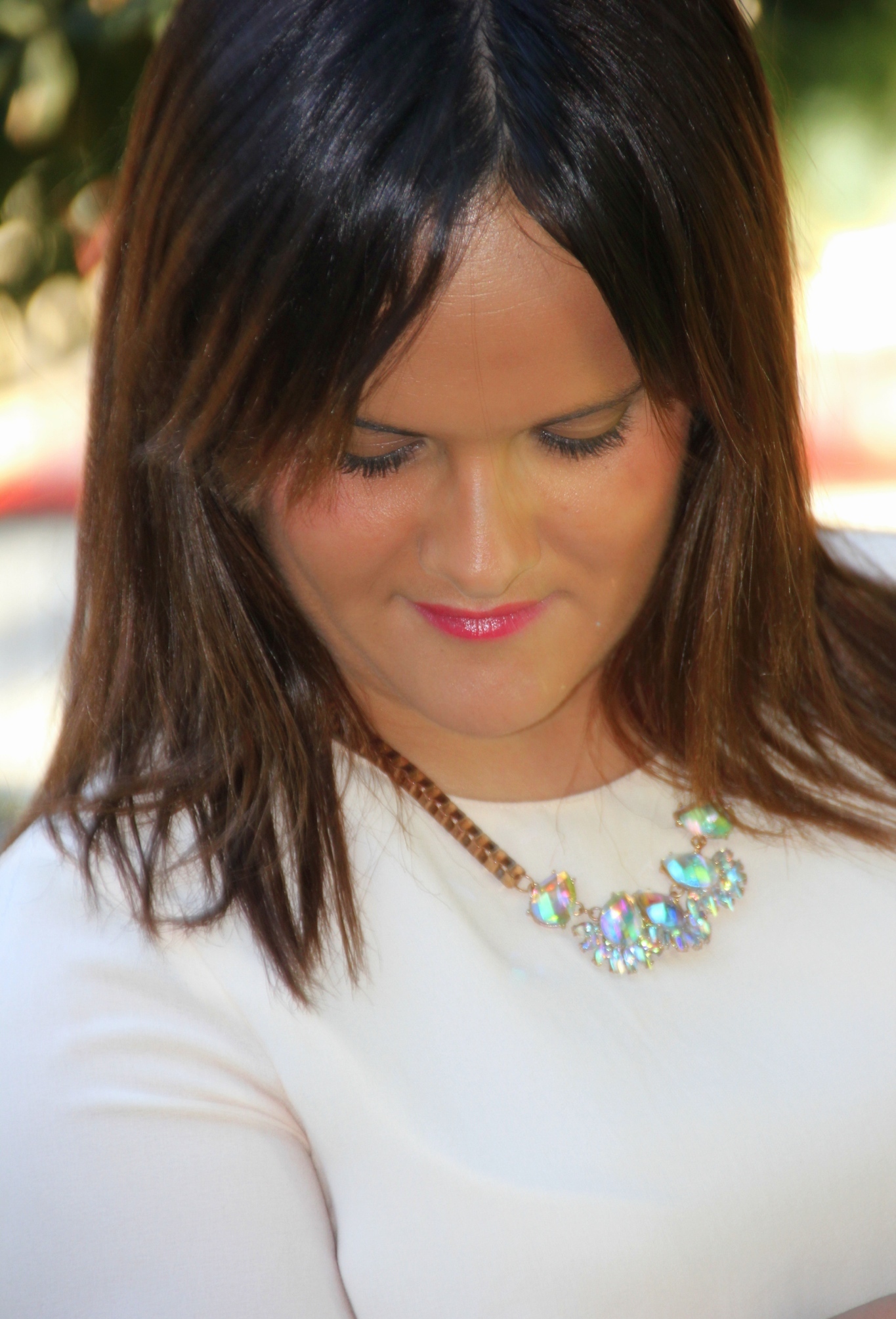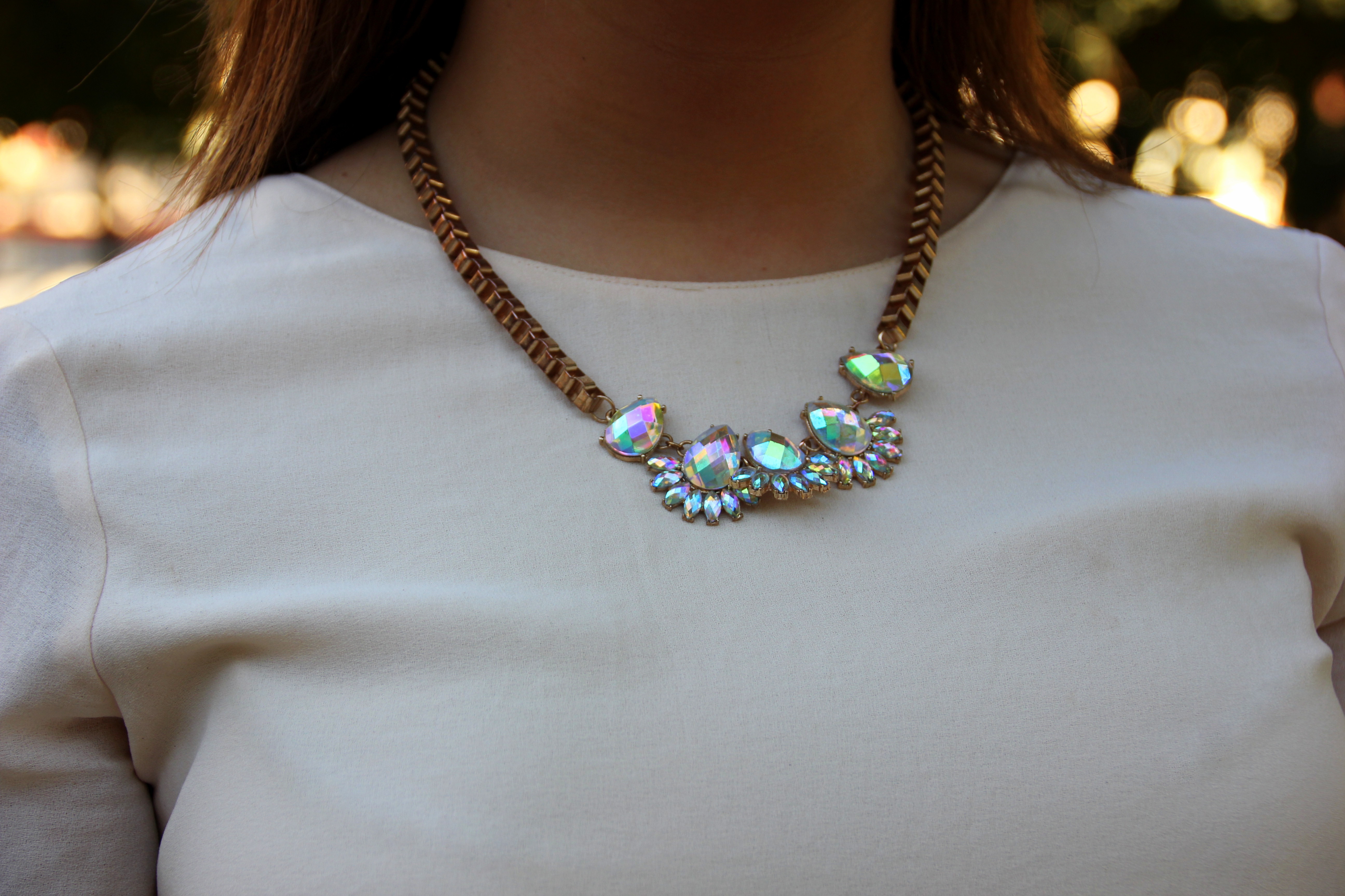 The cristal necklace is from STRADIVARIUS, gold bracelets from AGATHA and H&M rings.