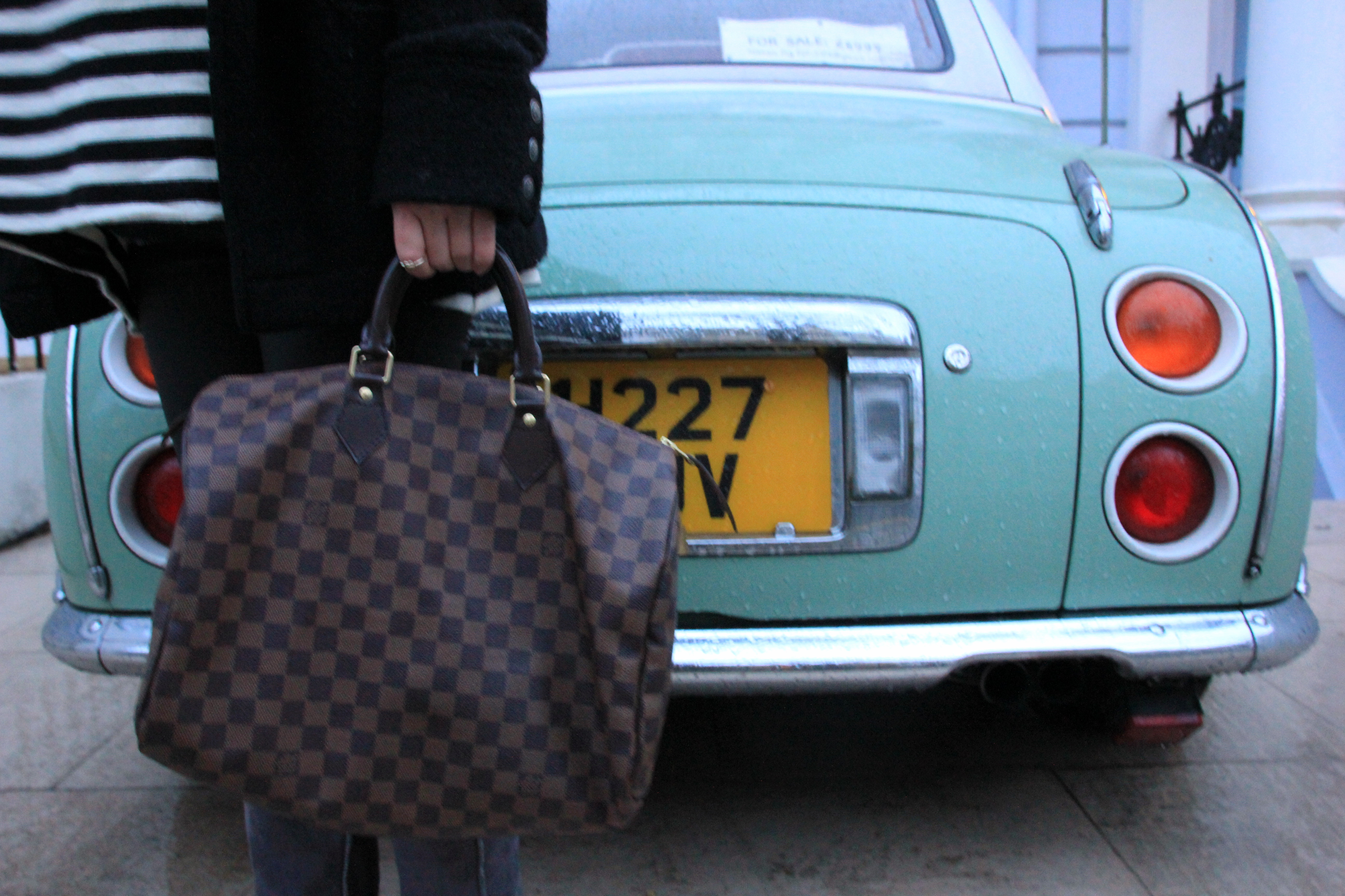 Bolso/Bag: Louis Vuitton Speedy; Cuello de leopardo/Leopard neck collar: Vintage; Gorro de lana/Beanie:H&M, PARECIDO AQUÍ