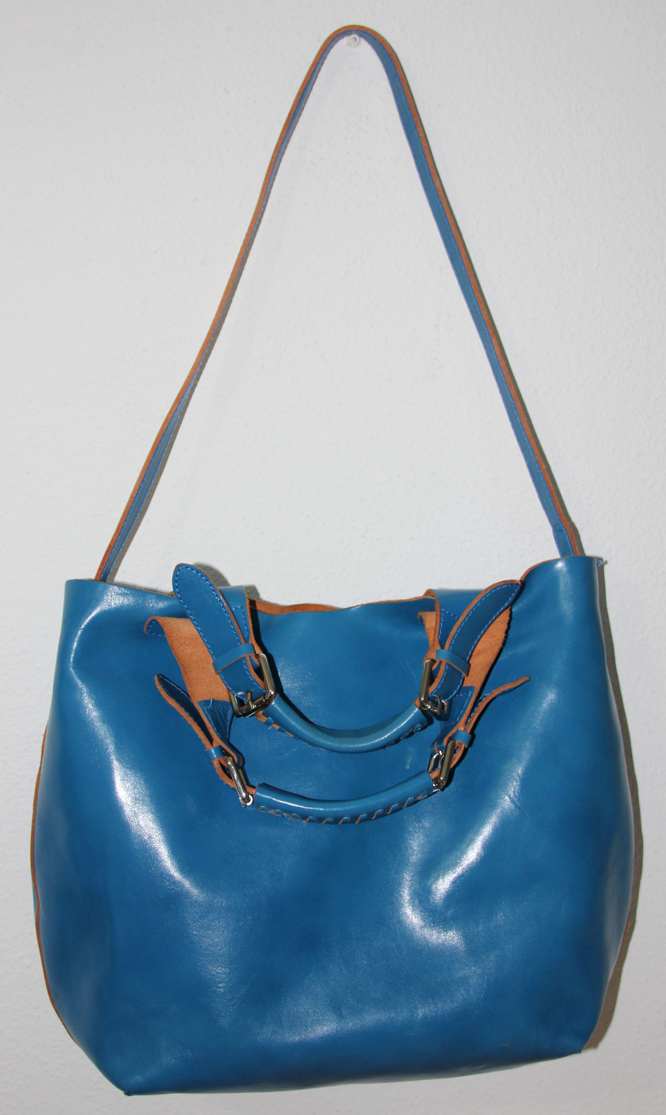 blue leather bag klein blue bag what's in my bagComo veis, es un maxi bolso de cuero azulón artesanal que da un toque especial a cualquier look. Las asas son muy originales por sus hebillas y trenzado. Me costó decidirme porque es muy arriesgado pero últimamente no me lo quito!! Es de Lluvias de Abril.