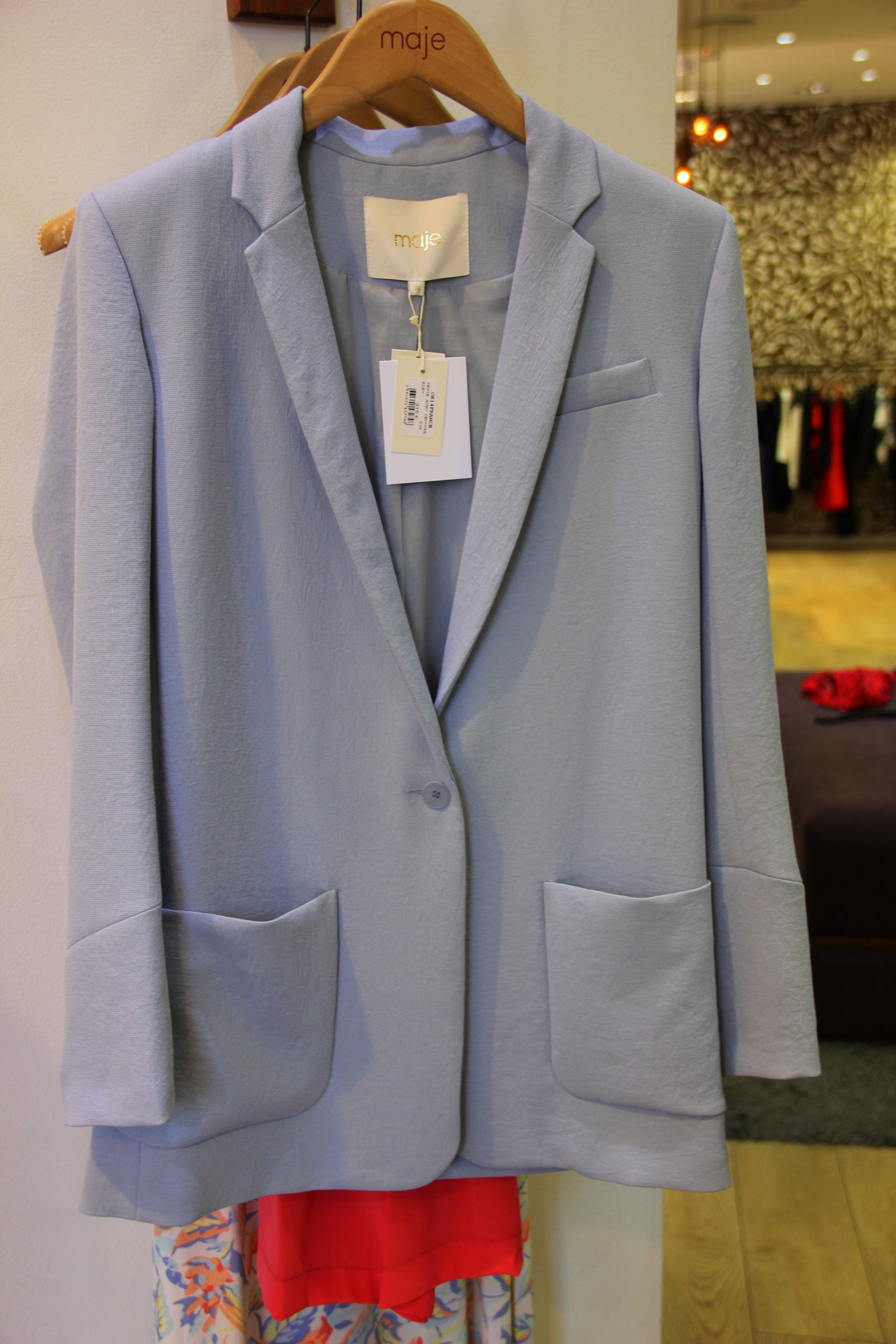 Maje outfitfringe baglook de majeblack leather jacket majebolso flecos majered dress, leather black jacketsequins jacketpastel blue blazermaje