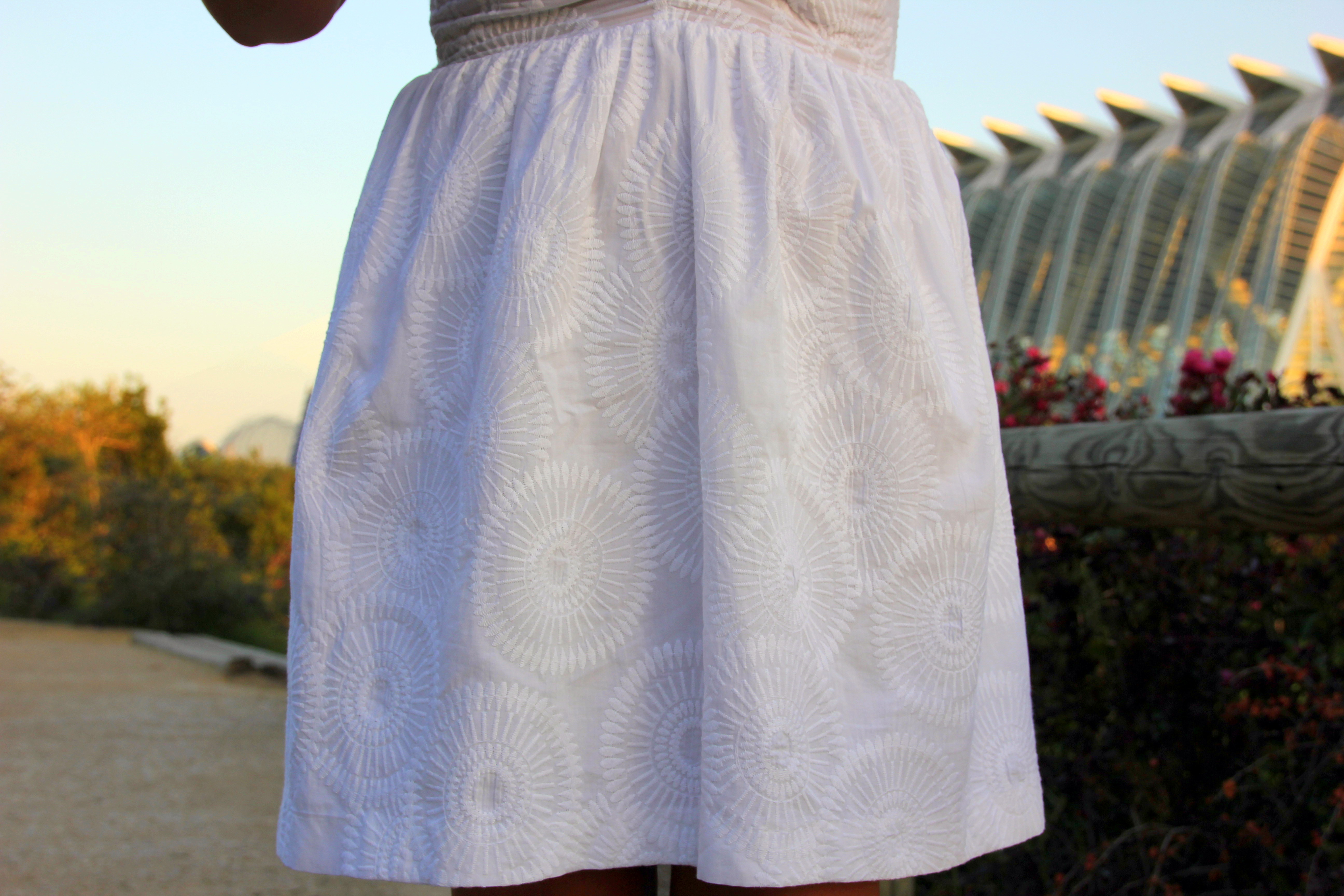Hoy os enseño un look con uno de sus diseños, un vestido de muselina blanco bordado. Una prenda cuidada al máximo y con detalles que la hacen muy especial.