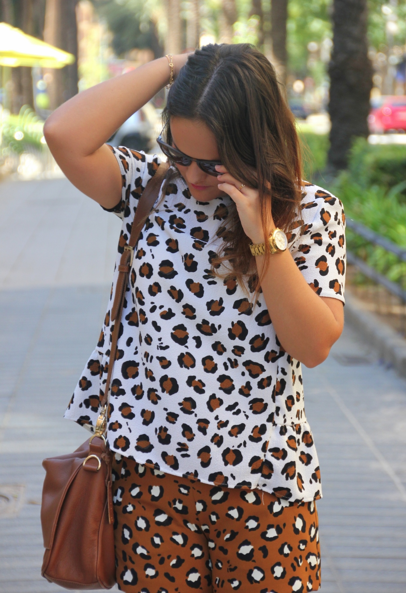 Muy buenos días!! En el look que os enseño hoy, decidí arriesgar con el ‘animal print’! Cuando se trata de mezclar diferentes estampados, es necesario tener ganas de experimentar con las prendas y tener algo muy importante en mente, ¡no mezclar muchos colores! Encuentro que las bermudas y el top encajan perfectamente en cuanto a color se refiere! Un ‘mix & match’ arriesgado pero que funciona 🙂 Además, las prendas por separado me están dando muchísimo juego, ¡me encantan!