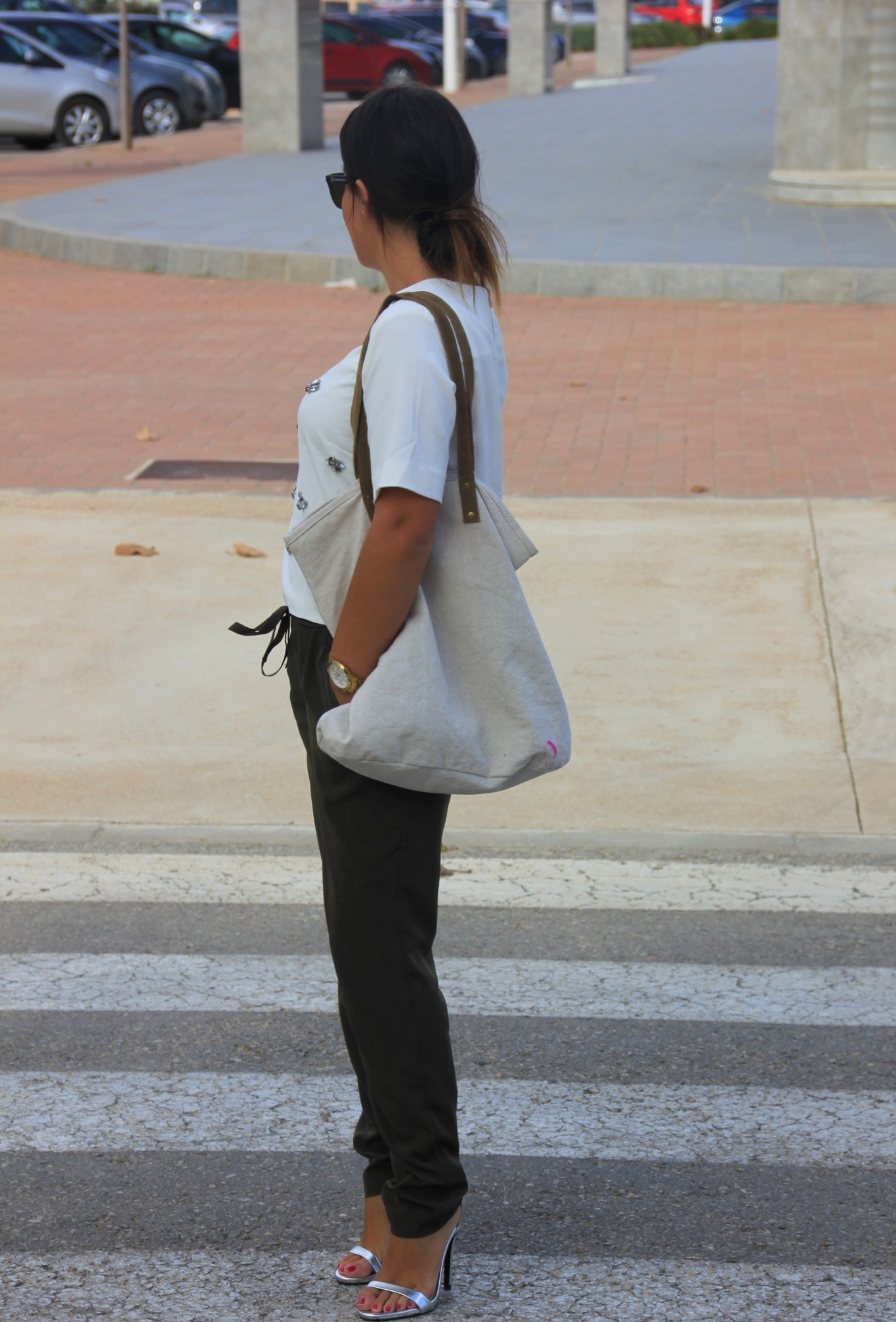 Definitivamente, ya ha llegado el frío a todas partes!! Qué ganas de ponerme esos sueters abrigaditos, botas altas y maxi bufandas!! Antes de entrar de lleno en los looks calentitos, no quería dejar de enseñaros mi nuevo y precioso top! Si, es de manga corta y ya hace frío, pero bien se puede utilizar en otoño-invierno con un cardigan de lana encima 🙂 Me confieso una loca por todo lo que lleve pedrería!! También llevo mis inseparables pantalones “pijama” en verde militar – color estrella del invierno. Una forma comodísima de vestir pantalones sin tener que recurrir a los jeans.