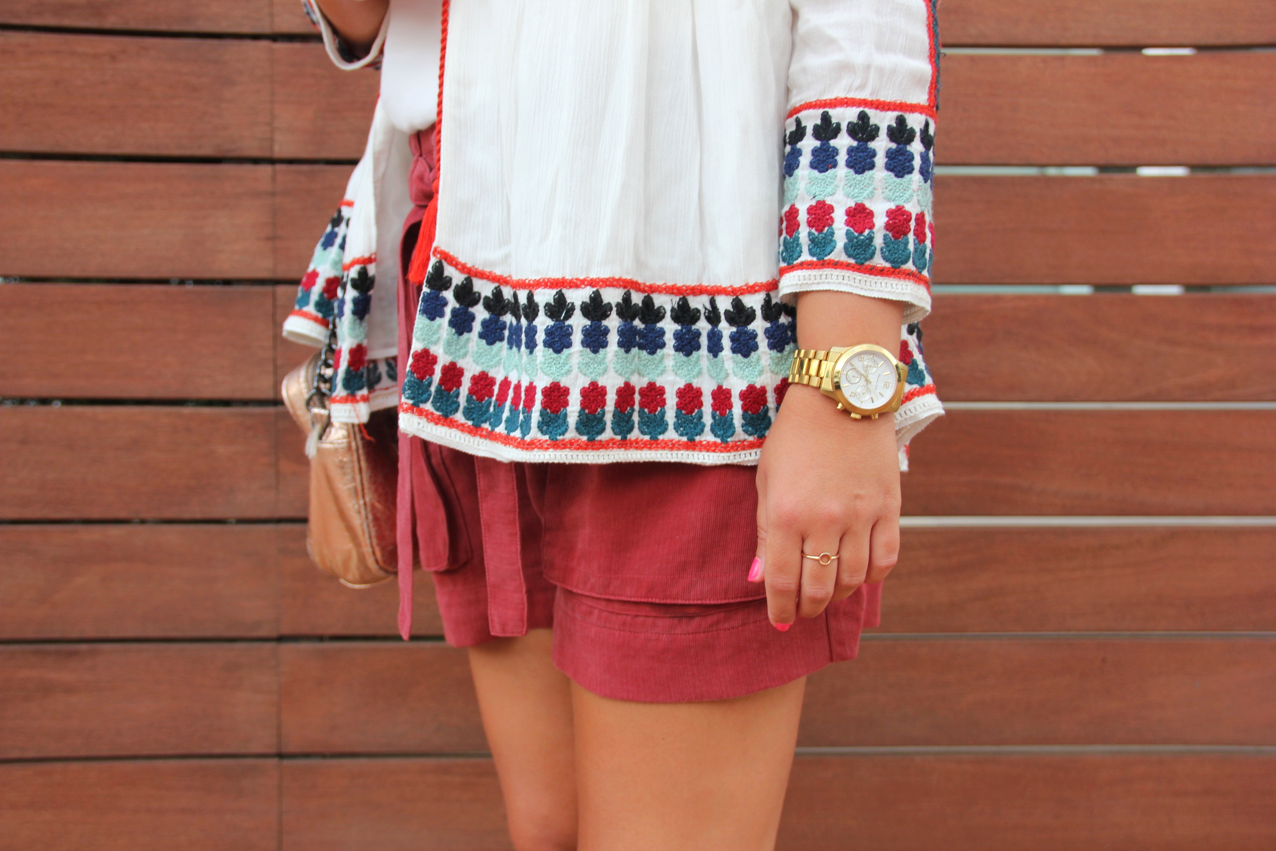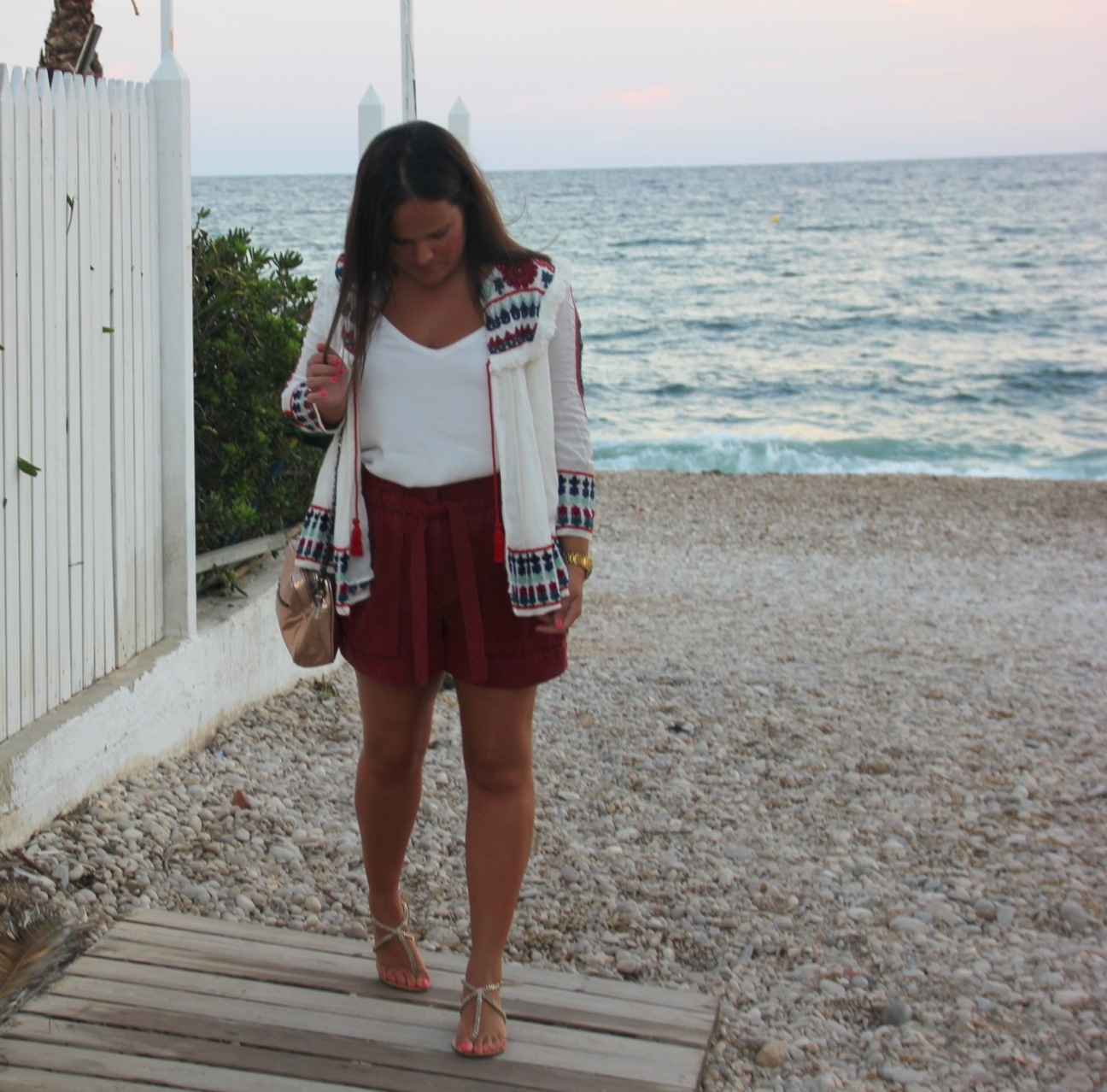 La combino con bermudas granates de talle alto y bolso y sandalias doradas!
